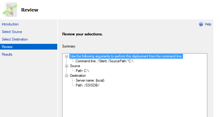 After you select the destination path; it is then time for review. The review section will provide you with a great overview of the Source path of the file being deployed and the destination location.
